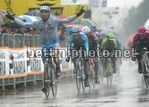Paolo Savoldelli in azione sotto la pioggia |